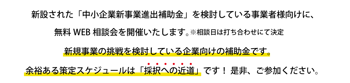 【無料】第3回 中小企業新事業進出促進補助金 申請サポートWEB相談会